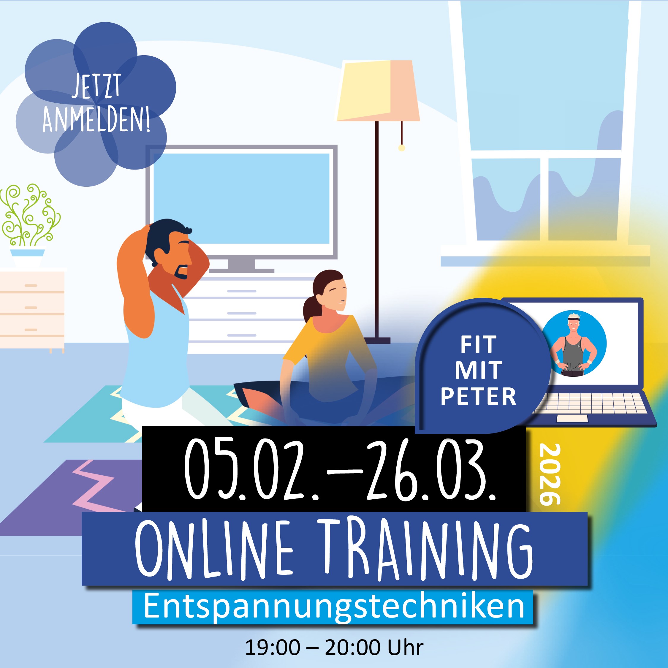 OnlineEntspannungstechniken Von 19:00 bis 20:00 Uhr trainiert ihr vom 05.02. – 26.03.2026 gemeinsam mit Physiotherapeut Peter Dörksen über Zoom. Kostenfrei anmelden: